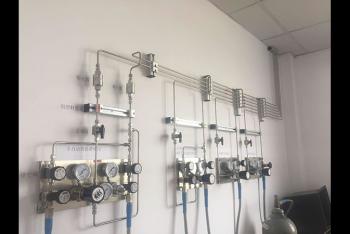 而實驗室集中供氣系統則不同,它是將人liu和氣瓶分開,所有供氣氣瓶分類后整理到一個放置點,也就是氣瓶室或儲氣間,在氣瓶室內部將減壓系統、報警系統、壓力監測系統統統安裝好,用氣體管道將所需氣體引入至對應房間,這種方式的好處第一是安全,尤其危險氣體源與實驗室相隔較遠,首先在危險氣源源頭上控制好;第二是方便氣瓶的更換、運輸,尤其大流量用的儲氣罐,空壓機等較大型設備;第三實驗室的美觀性,實驗室內整潔美觀,方便使用;